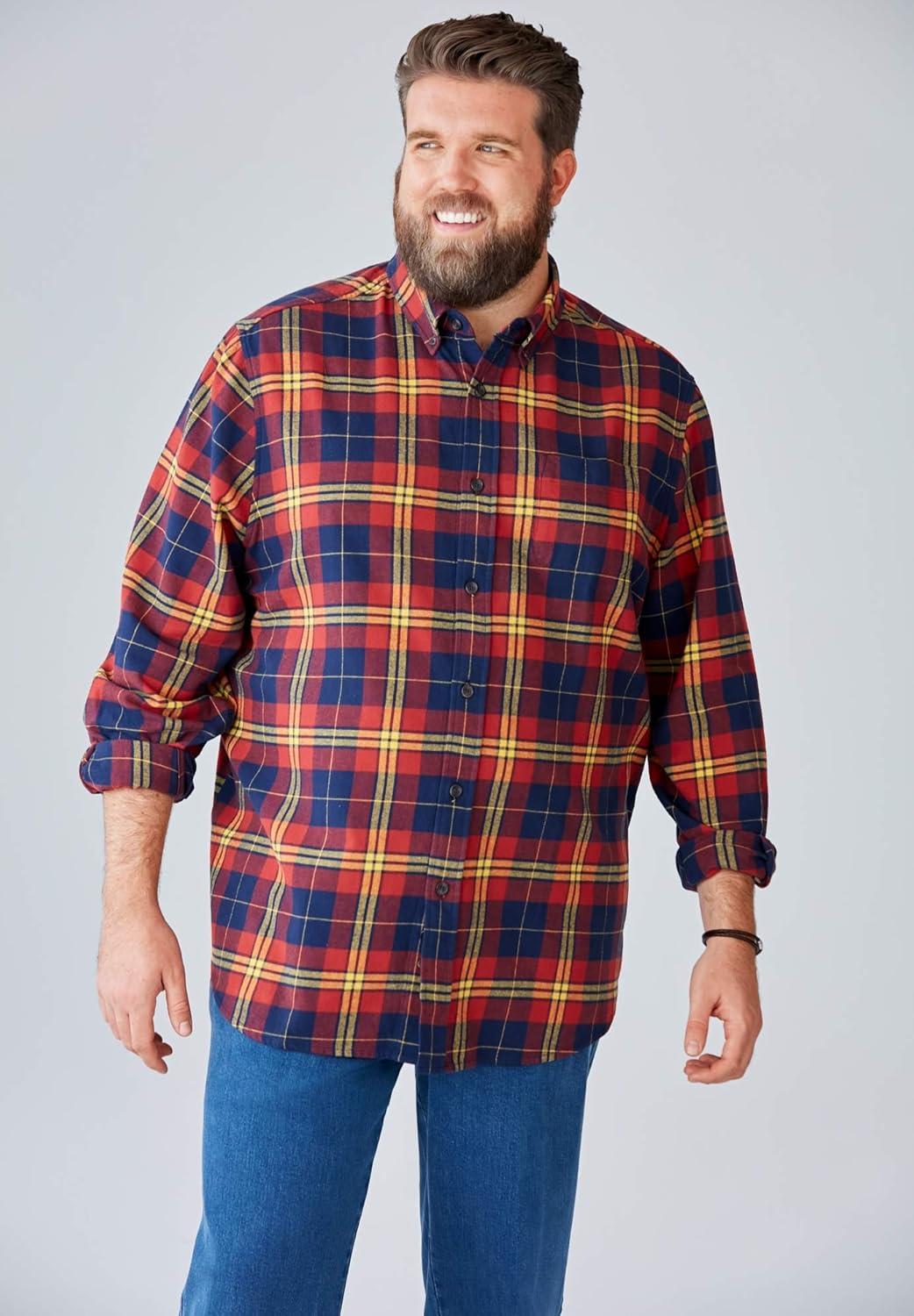 This is more than your average flannel – it's a lightweight option for Fall, Winter and anytime there is a chill in the air. Plus, it's the perfect layering piece for winter and the holiday season — whether worn over a henley or buttoned over a t-shirt for a rugged, outdoorsy look. Relaxed fitbr>Button-down collarbr>Horn buttonsbr>Long sleeves with adjustable cuffsbr>Open chest pocketbr>Big length approx. 34″; Tall length approx. 36″br>100% cottonbr>Machine washbr>Imported