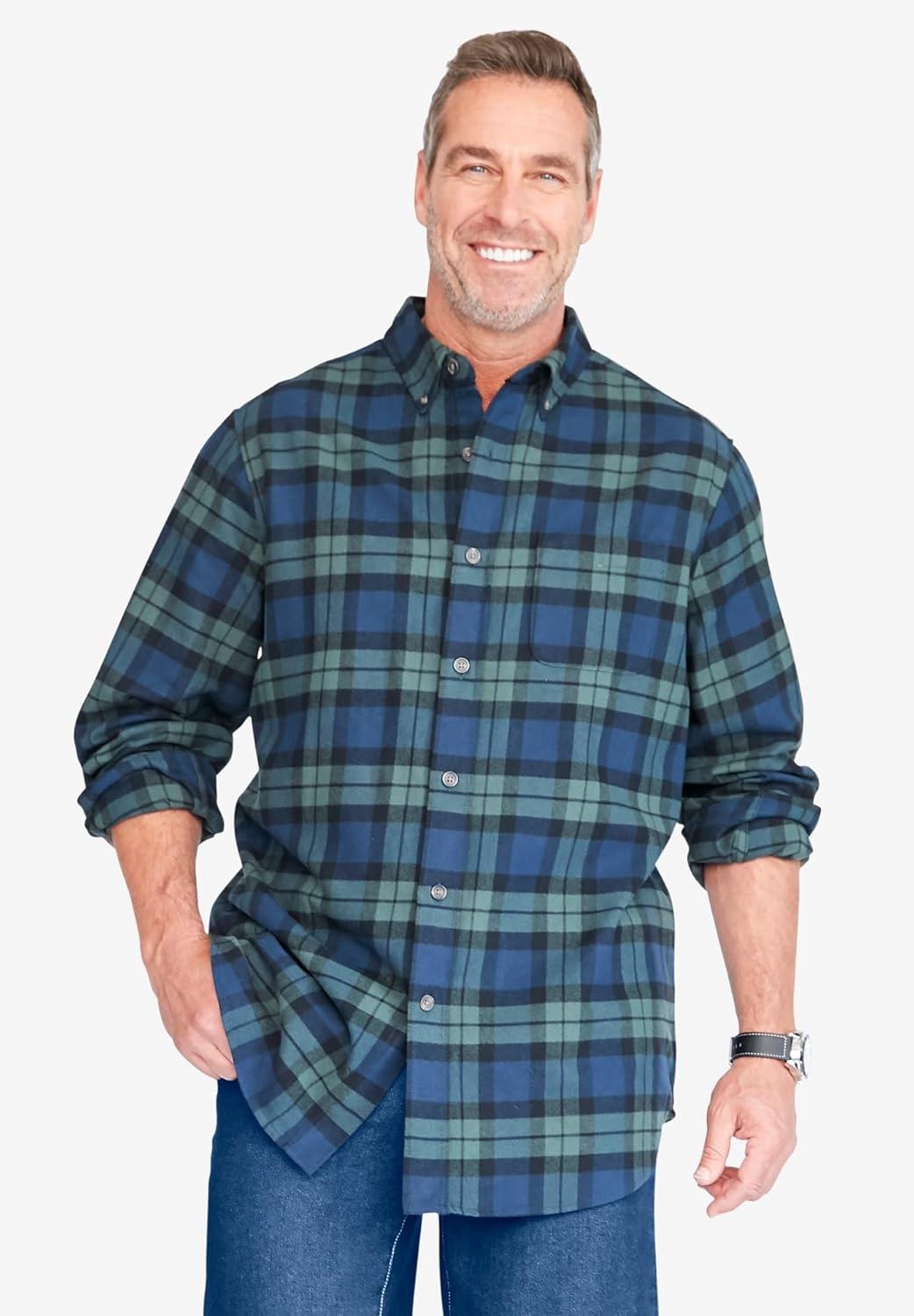 This is more than your average flannel – it's a lightweight option for Fall, Winter and anytime there is a chill in the air. Plus, it's the perfect layering piece for winter and the holiday season — whether worn over a henley or buttoned over a t-shirt for a rugged, outdoorsy look. Relaxed fitbr>Button-down collarbr>Horn buttonsbr>Long sleeves with adjustable cuffsbr>Open chest pocketbr>Big length approx. 34″; Tall length approx. 36″br>100% cottonbr>Machine washbr>Imported