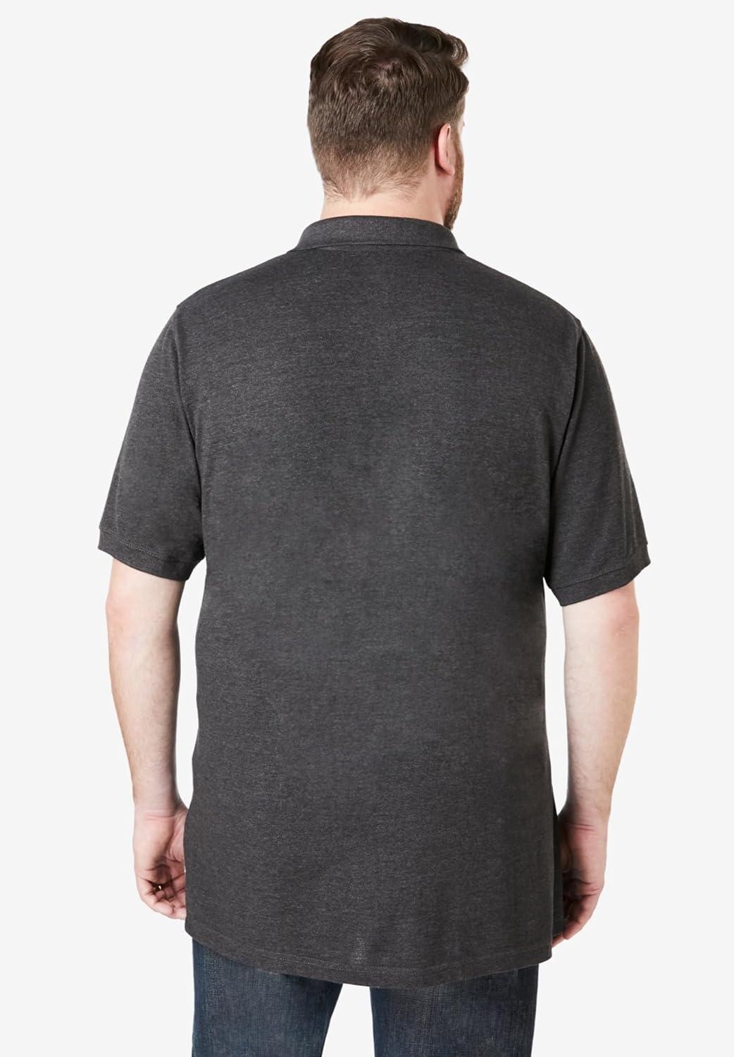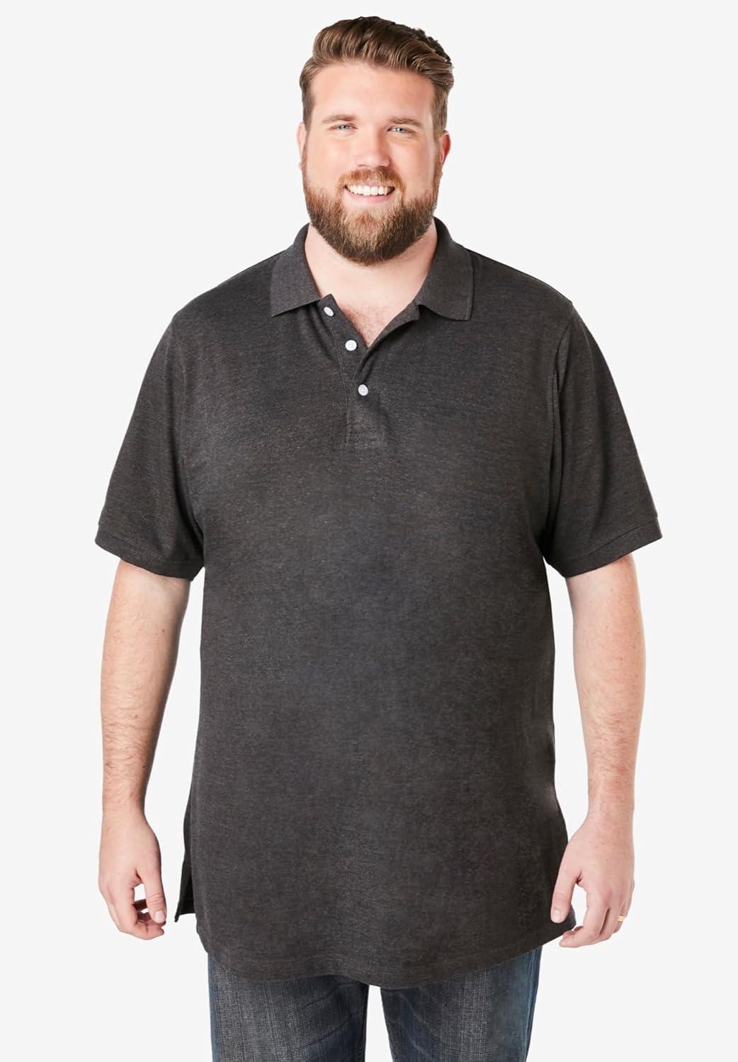 KingSize Men’s Big & Tall Longer-Length Shrink-Less Cotton Polo Shirt(Heather Charcoal)