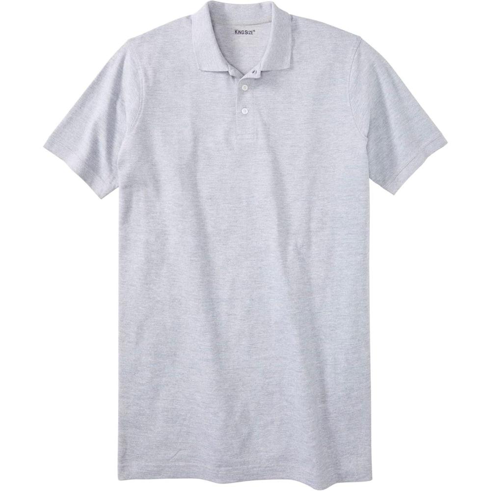 KingSize Men’s Big & Tall Longer-Length Shrink-Less Cotton Polo Shirt(Heather Grey)