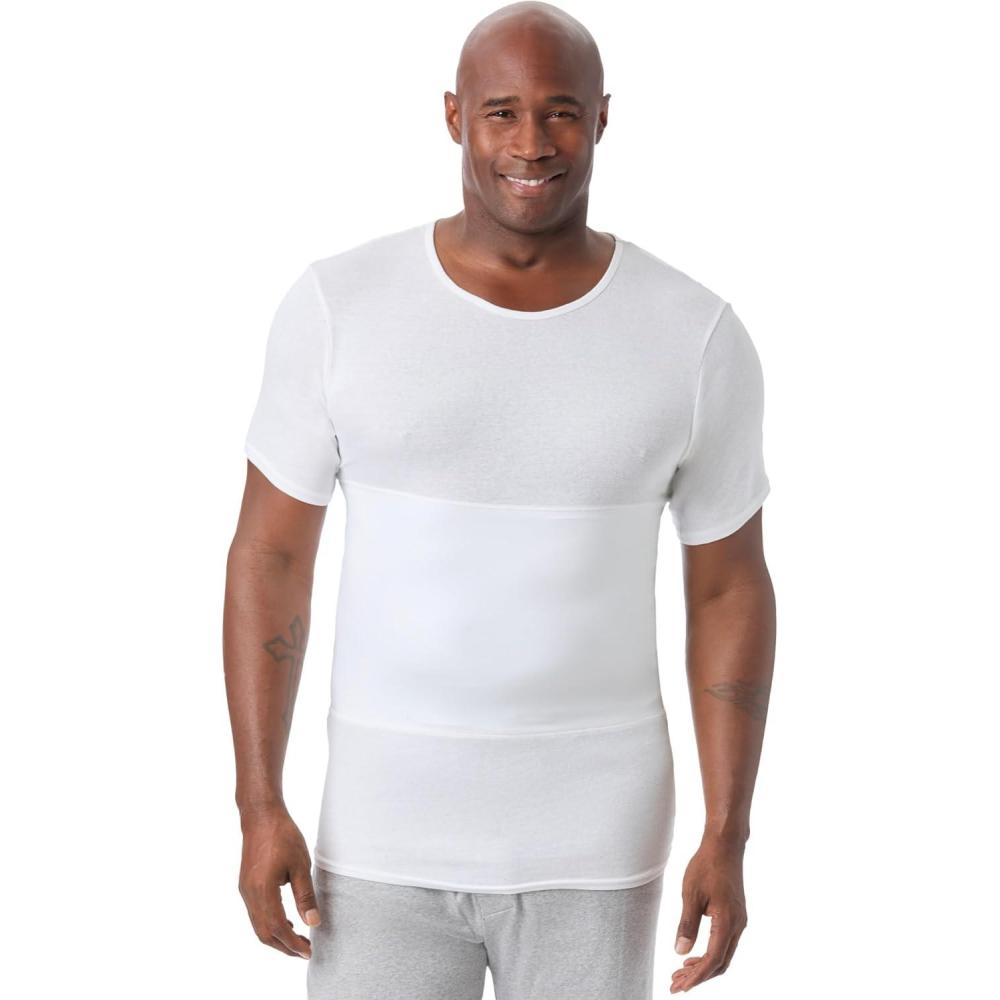 Look your best every day. The sculpting undershirt is made with a midsection compression panel to smooth and slim your midsection. Wear discreetly underneath shirts and sweaters to work and social events. Short sleeveMidsection compression panelTaglessShirt: 100% cotton; panel: polyester/spandexMachine washableImported