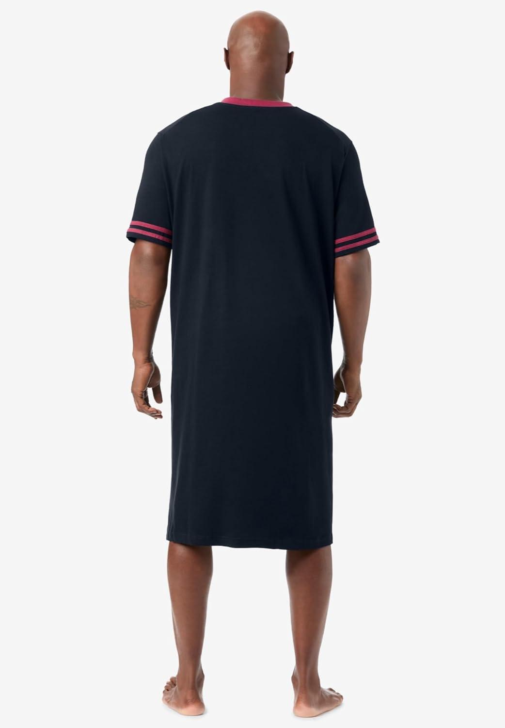 KingSize Men's Big & Tall Short-Sleeve Jersey Henley Nightshirt(Black)