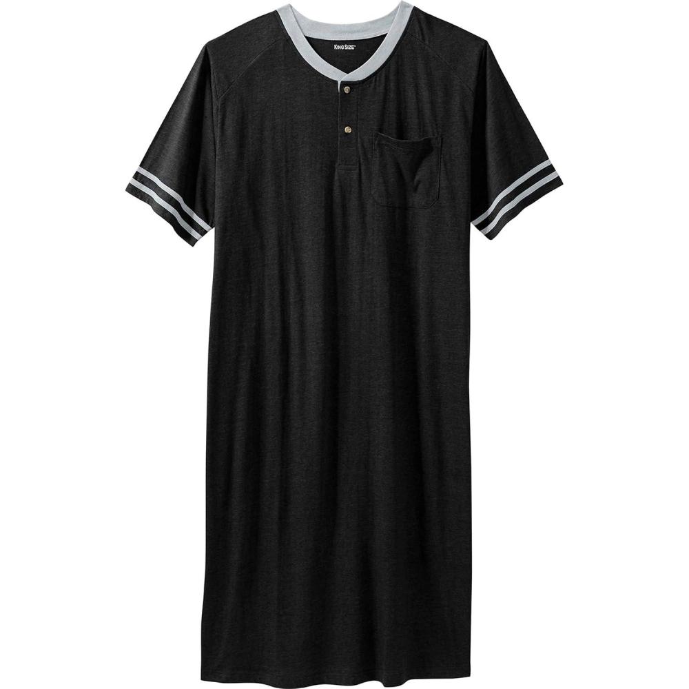 KingSize Men’s Big & Tall Short-Sleeve Jersey Henley Nightshirt(Black)