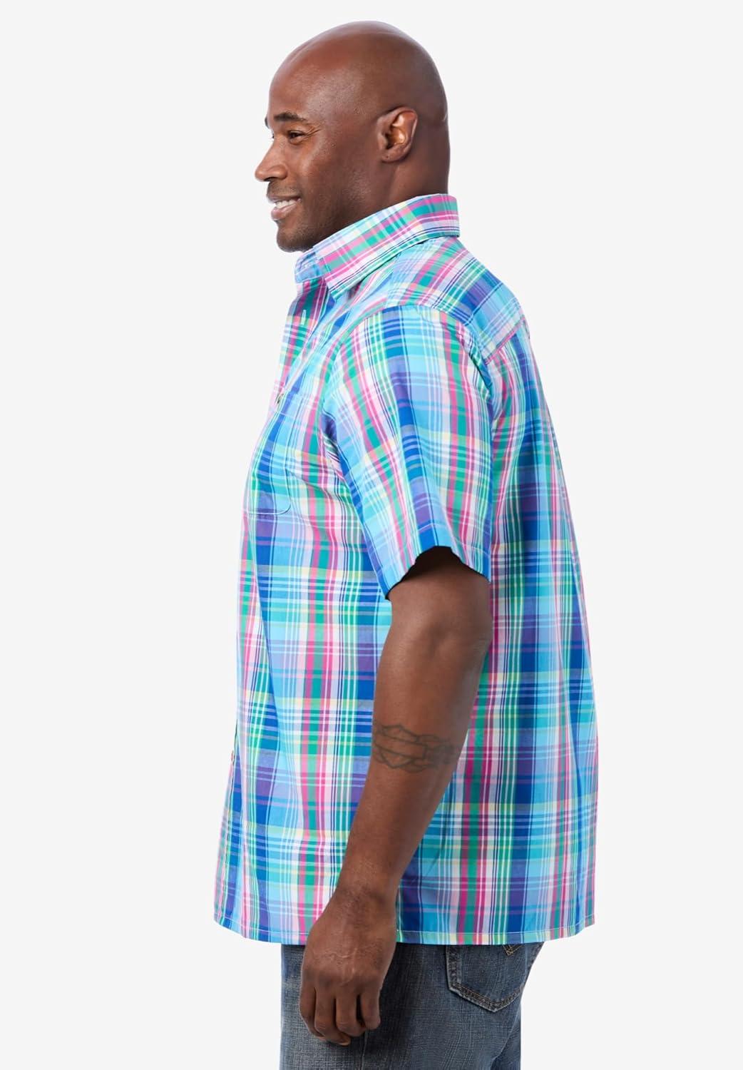 KingSize Men's Big & Tall Short-Sleeve Plaid Sport Shirt(Kelly Green Plaid)