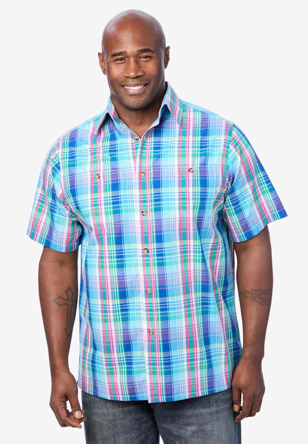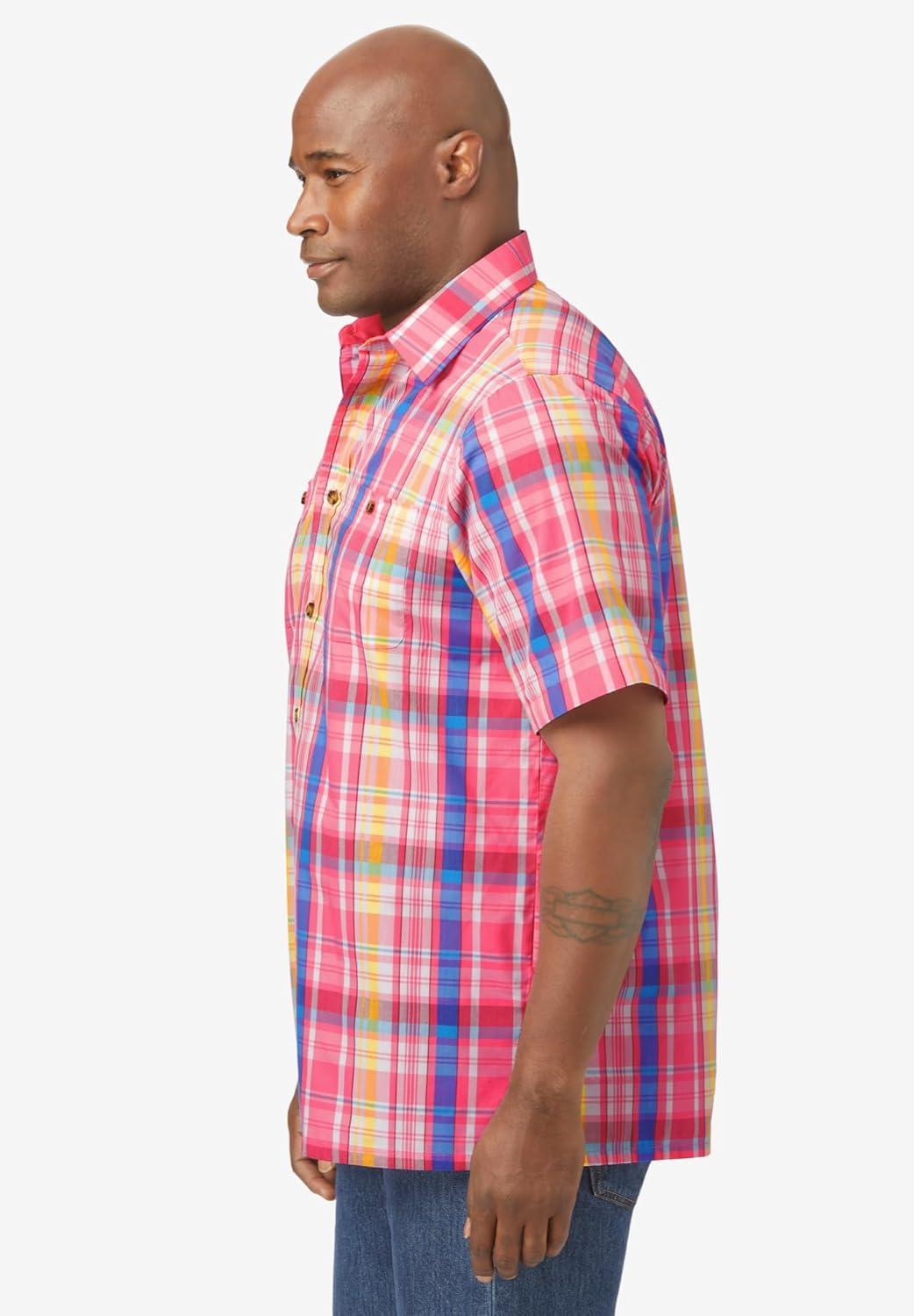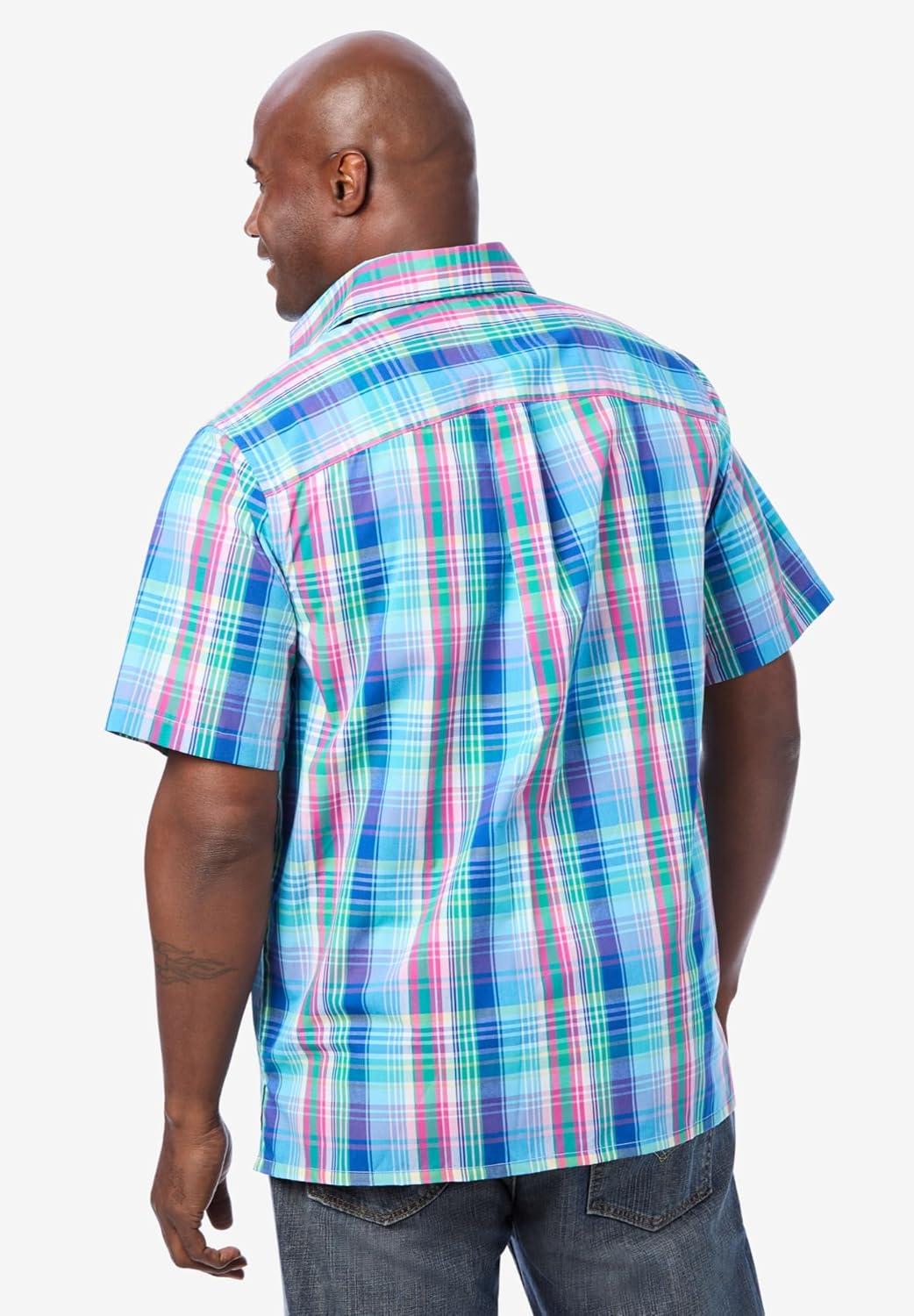 This plaid short-sleeve button-down is simple enough that you can pair it with any pants, but still classic enough to wear to the office. Enjoy wearing this easy-care shirt throughout the year. Easy-careFaux horn buttons and pointed collarTwo button-through chest pocketsStraight hem with side ventsBox-pleated back yokeBig abt. 34″; Tall abt. 36″Cotton/polyesterMachine washImported Love this care-free Sport Shirt?