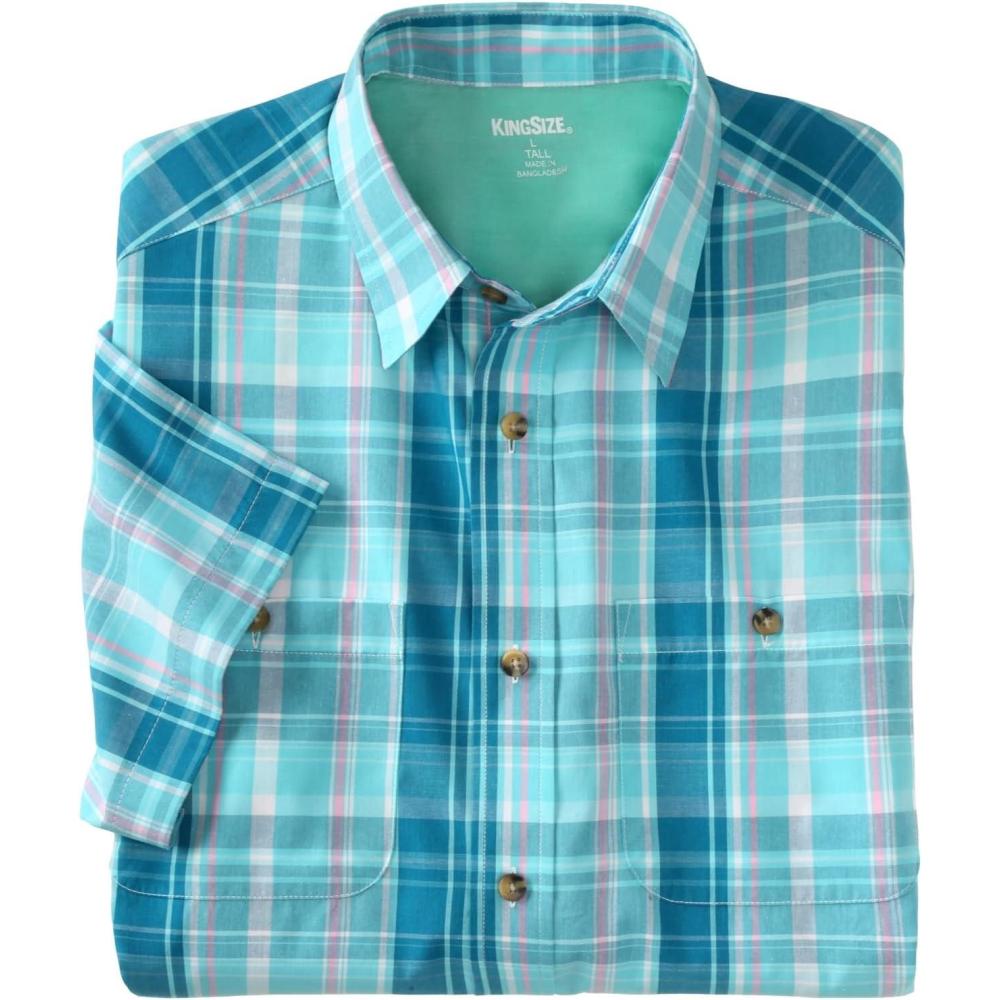 imageKingSize Mens Big ampamp Tall ShortSleeve Plaid Sport ShirtSeafoam Plaid