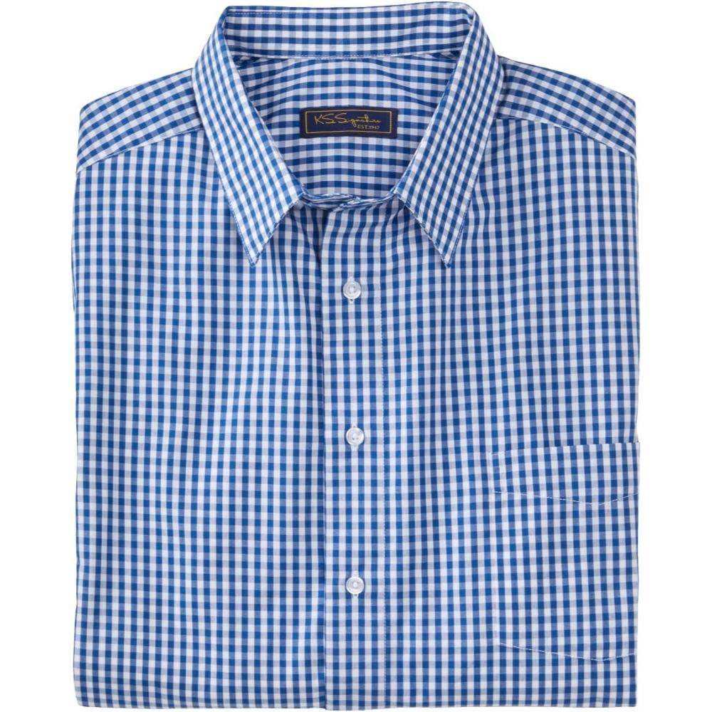 Our KS Signature No Hassle wrinkle-free dress shirt is designed to resist wrinkles and features a stain-resistant finish. It stays looking fresh-pressed all day, no matter what your schedule holds. Relaxed fitbr>Chest pocketbr>Wrinkle-freebr>Back yoke with side pleats for extra mobilitybr>Big length abt. 34″; Tall length abt. 36″br>Easy-care cotton/polyesterbr>Machine wash cold; tumble drybr>Imported Check out our collection of for the perfect blend of comfort and sophistication.