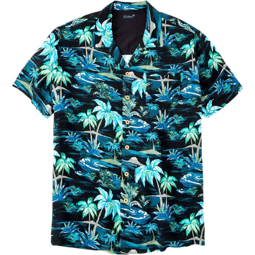 KingSize Men’s Big & Tall Tropical Rayon Short-Sleeve Shirt(Black Palm)