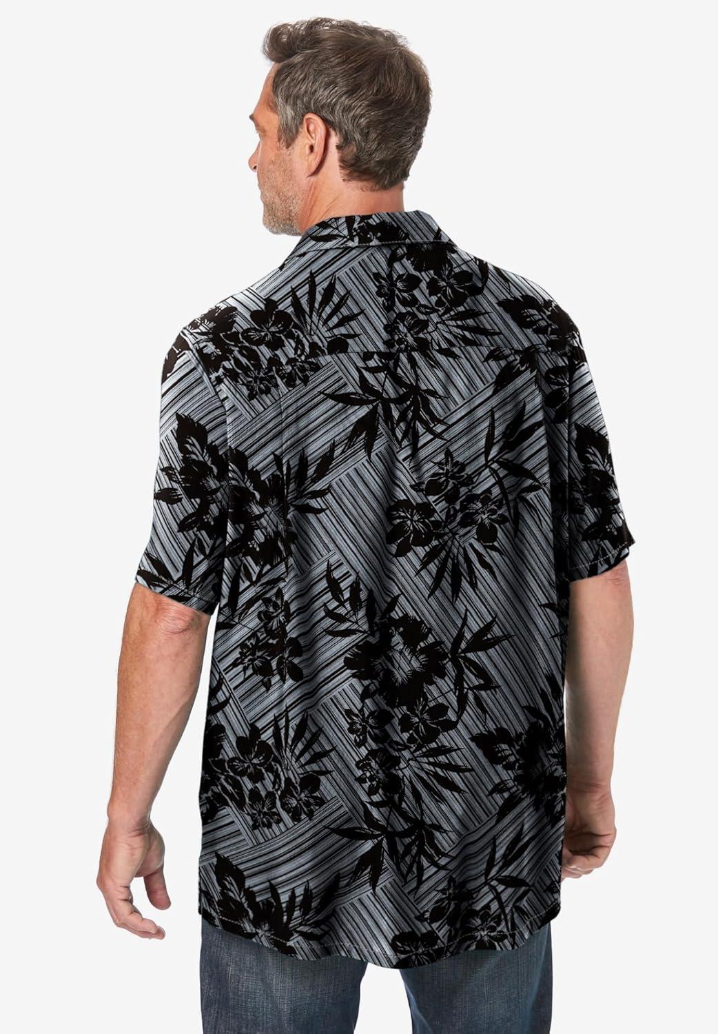 KingSize Men’s Big & Tall Tropical Rayon Short-Sleeve Shirt(Black Stripe Floral)